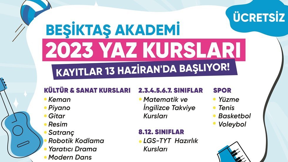 Beşiktaş Akademi’de yaz boyunca sınavlara hazırlık için takviye kurslar, kültür sanat kursları ve farklı spor branşlarında kurslar düzenlenecek.