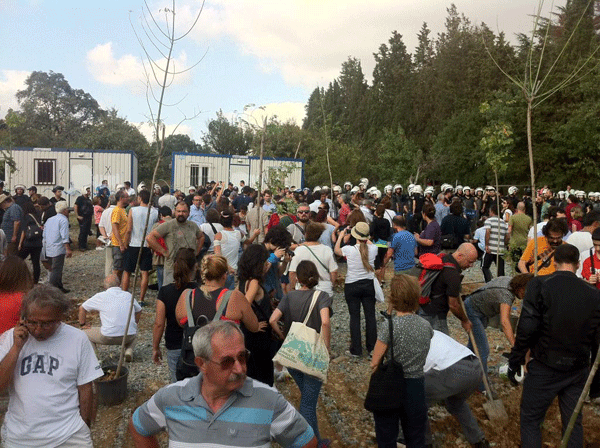 Toplanan halk fidanlara cansuyu vermek için polisi ablukasına karşı direndi. Yaklaşık yarım saat süren direnişin ardından fidanlara cansuyu verilebildi.